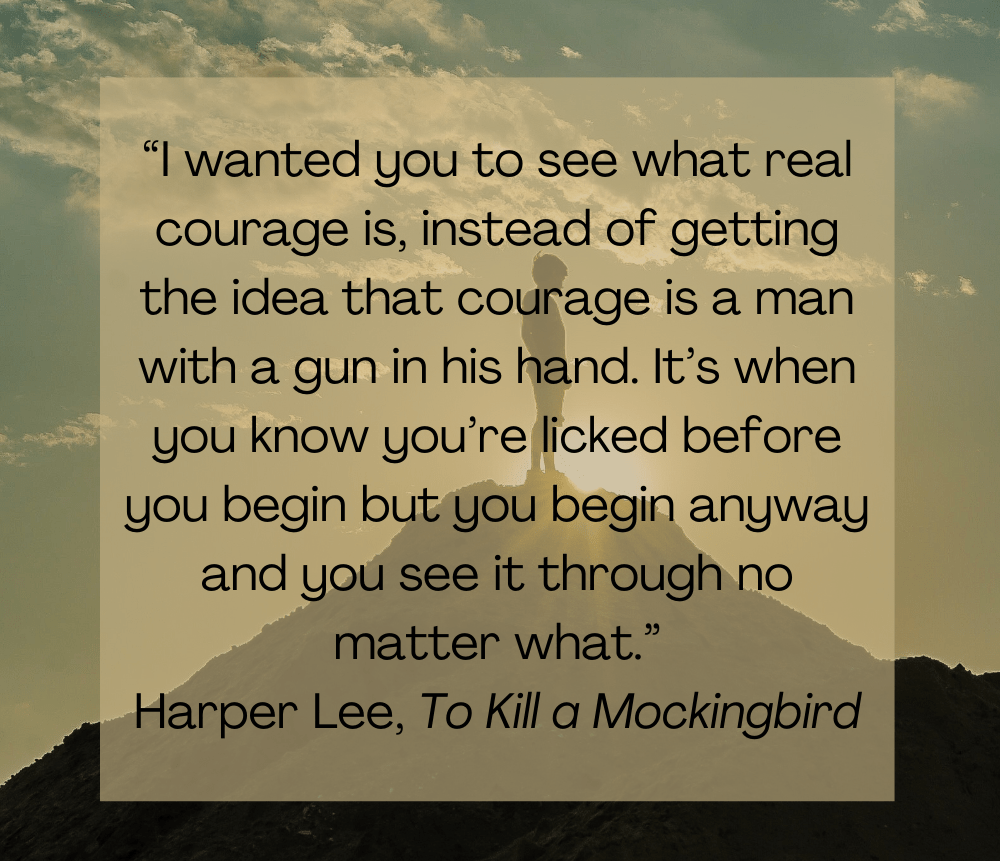 “I wanted you to see what real courage is, instead of getting the idea that courage is a man with a gun in his hand. It’s when you know you’re licked before you begin but you begin anyway and you see it through no matter what.”