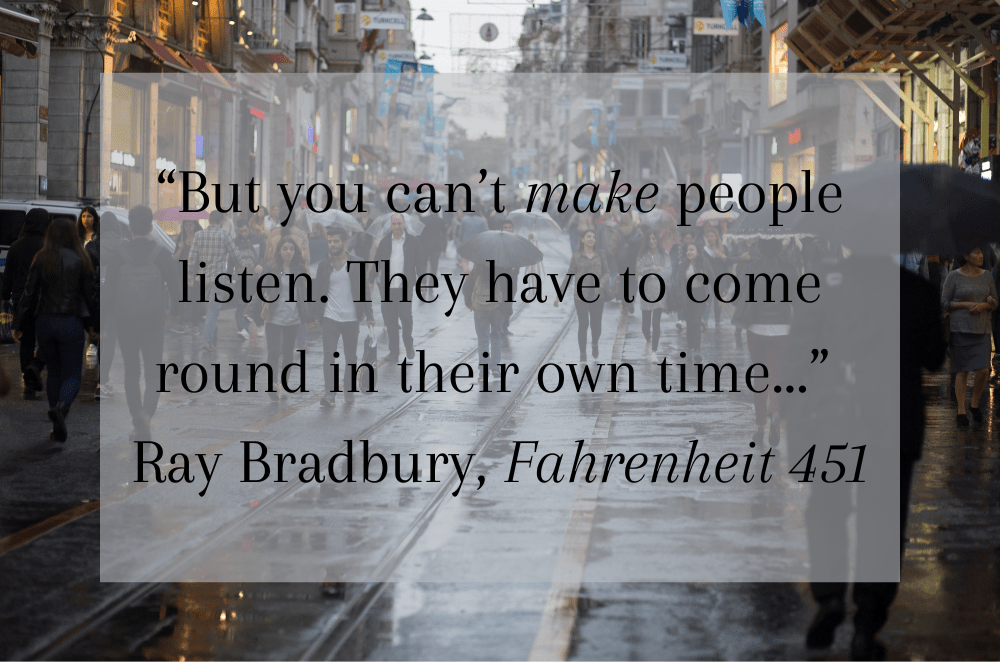 Happy Monday, everyone! I wanted to keep this post short and sweet, so I’ll get right into it. I decided to share a quote from Ray Bradbury’s Fahrenheit 451.