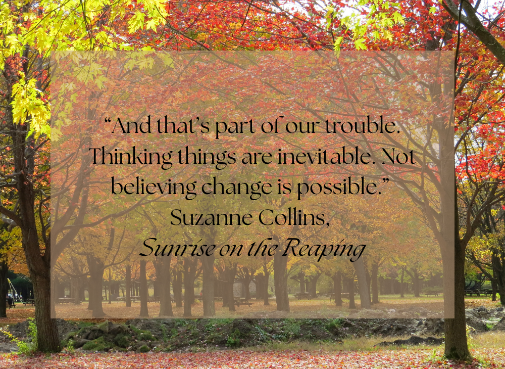 “And that’s part of our trouble. Thinking things are inevitable. Not believing change is possible.”
